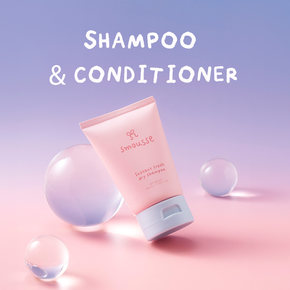 (duo set) smousse fresh dry shampoo 100ml & hair leave-in foam peachy pop 100ml