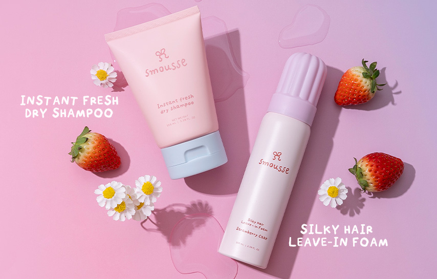 (duo set) smousse fresh dry shampoo 100ml & hair leave-in foam strawberry cake 100ml